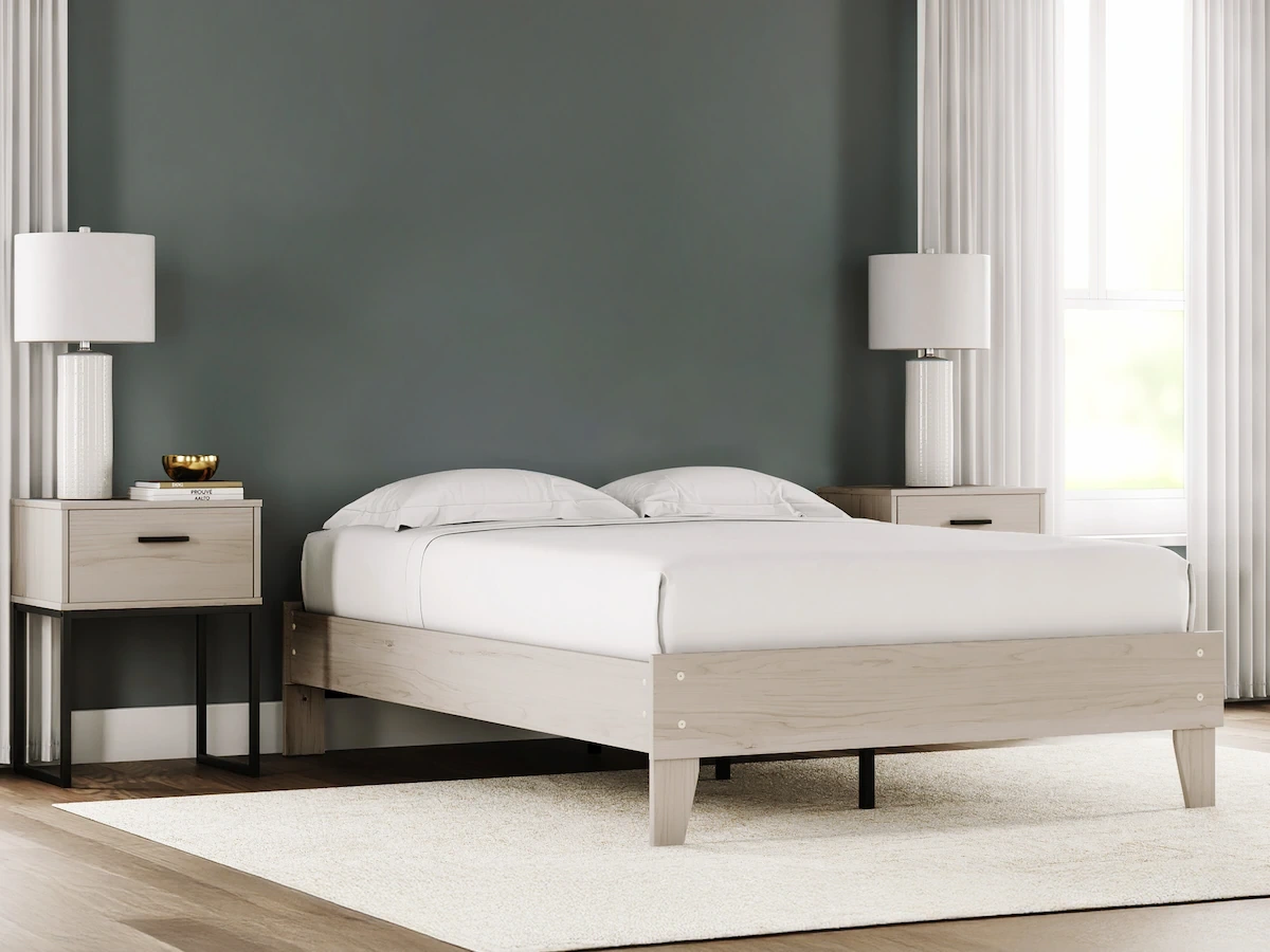 The Socalle Platform Bed Frame boasts a modern design with clean lines and a light natural finish, blending seamlessly into any decor. Its minimalist aesthetic adds timeless sophistication to your bedroom.