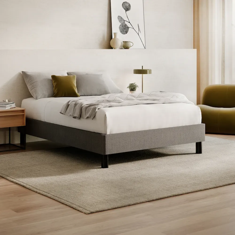 Design your perfect space with the Upholstered Foundation Bed Frame, featuring solid wood construction and soft linen upholstery. Works beautifully on its own for clean, minimal design.