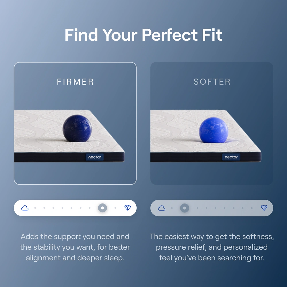 Your mattress, your way. Our Firmer and Softer mattress toppers make your perfect fit possible, providing the support or pressure-relief you’ve been missing.