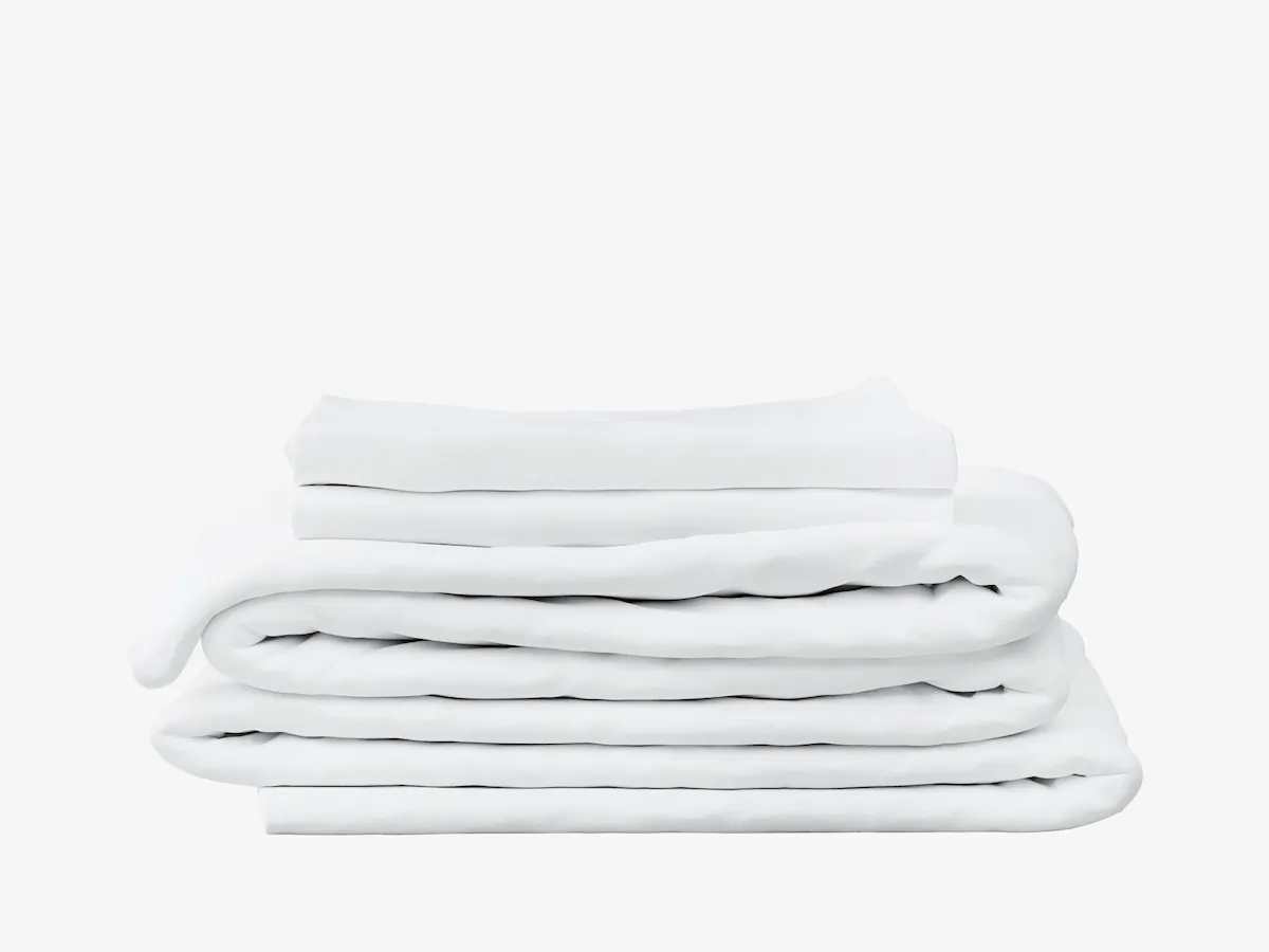 The Serenity Sheet Set includes one flat sheet, one fitted sheet, and two standard pillowcases, made with a bamboo-rayon blend that gets softer with every wash.