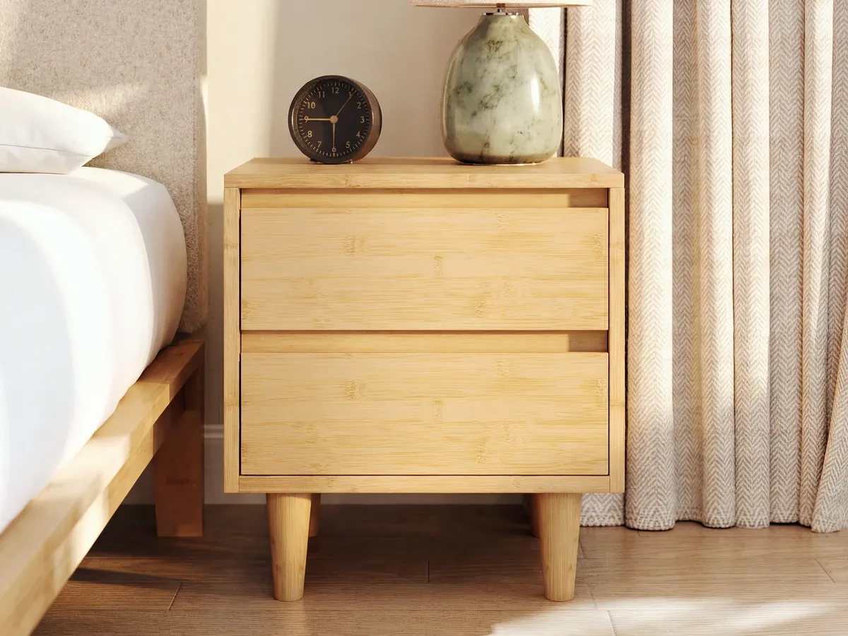 With two smooth-gliding drawers and your choice of natural or walnut bamboo, the Bamboo Nightstand combines everyday function with down-to-earth design.