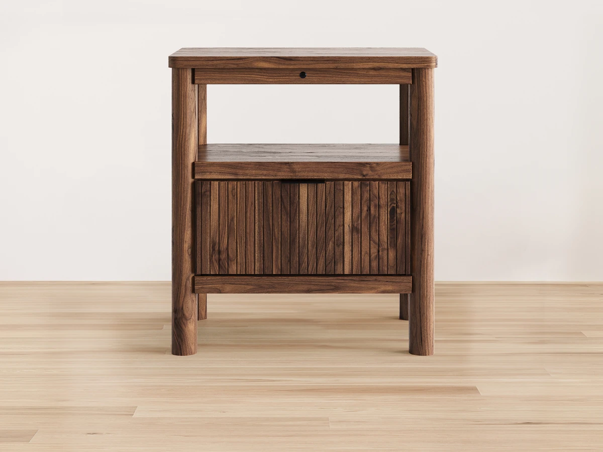 The Cadmori Nightstand features one roomy drawer, soft under-lighting, and a rich walnut or light oak finish. It’s everything you need for a functional (and seriously cozy) nighttime setup.