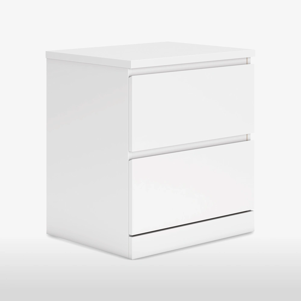 Featuring clean lines, a solid white finish, and 2-drawer storage, the Onita nightstand blends modern design with functional features, making it perfect for keeping kids' rooms organized.